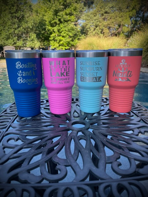 These are not your mass made, box store, cups and can coolers. These are in-house designed and engraved. We take pride in our work.